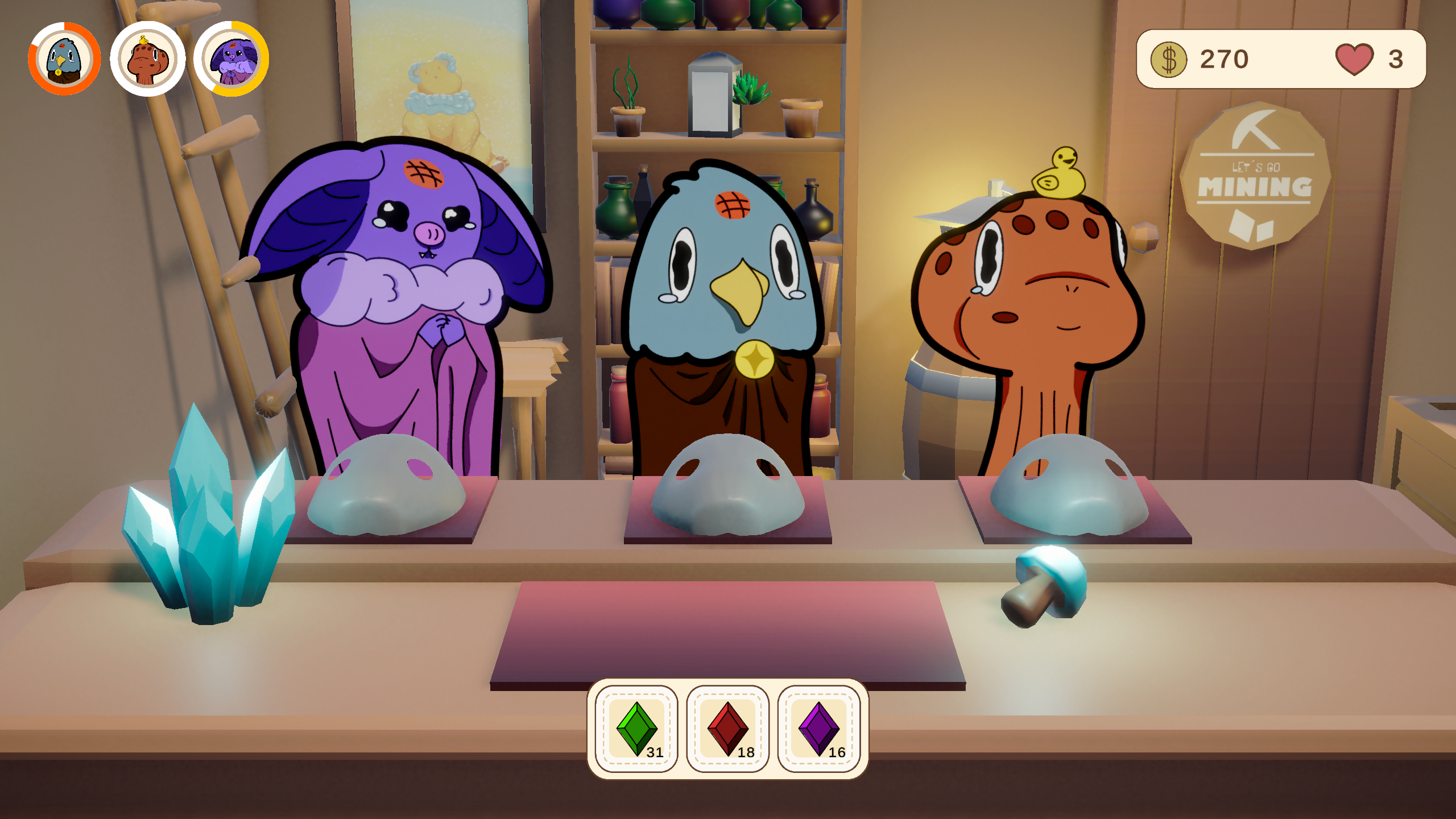 You are a small goblin who owns a mask repair shop. Customers regularly come into your shop with their own individual demands. To obtain the required materials, you go into the mine and mine them yourself. But be careful — your customers won’t wait forever. If your rating drops too low, you lose the game. Mine, craft, earn money.